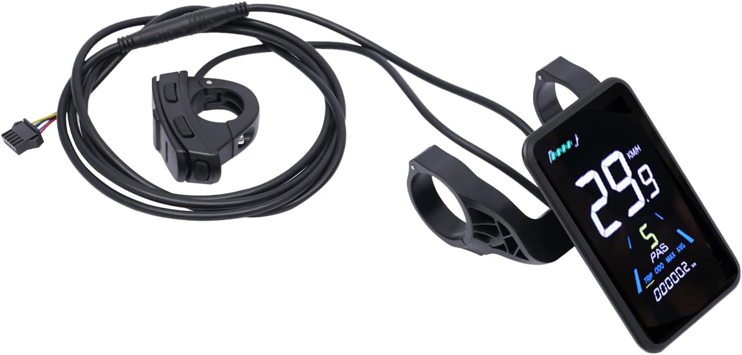 CONVENIENT TO USE: The full-color LCD display provides real-time data including current speed, max and average speed, total and single trip mileage, battery level, assist gear, cruise control status, and error codes—keeping you fully informed at all times. The built-in backlight ensures clear visibility even in low-light conditions.