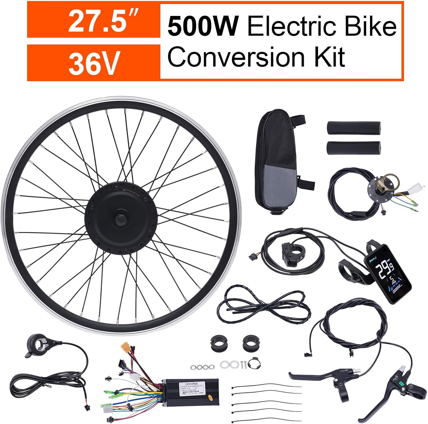 36V 500W Electric Bike Conversion Kit 27.5 Front Wheel Hub Motor E-Bike Kit 5 Speed Adjustable 40km/H LCD Display