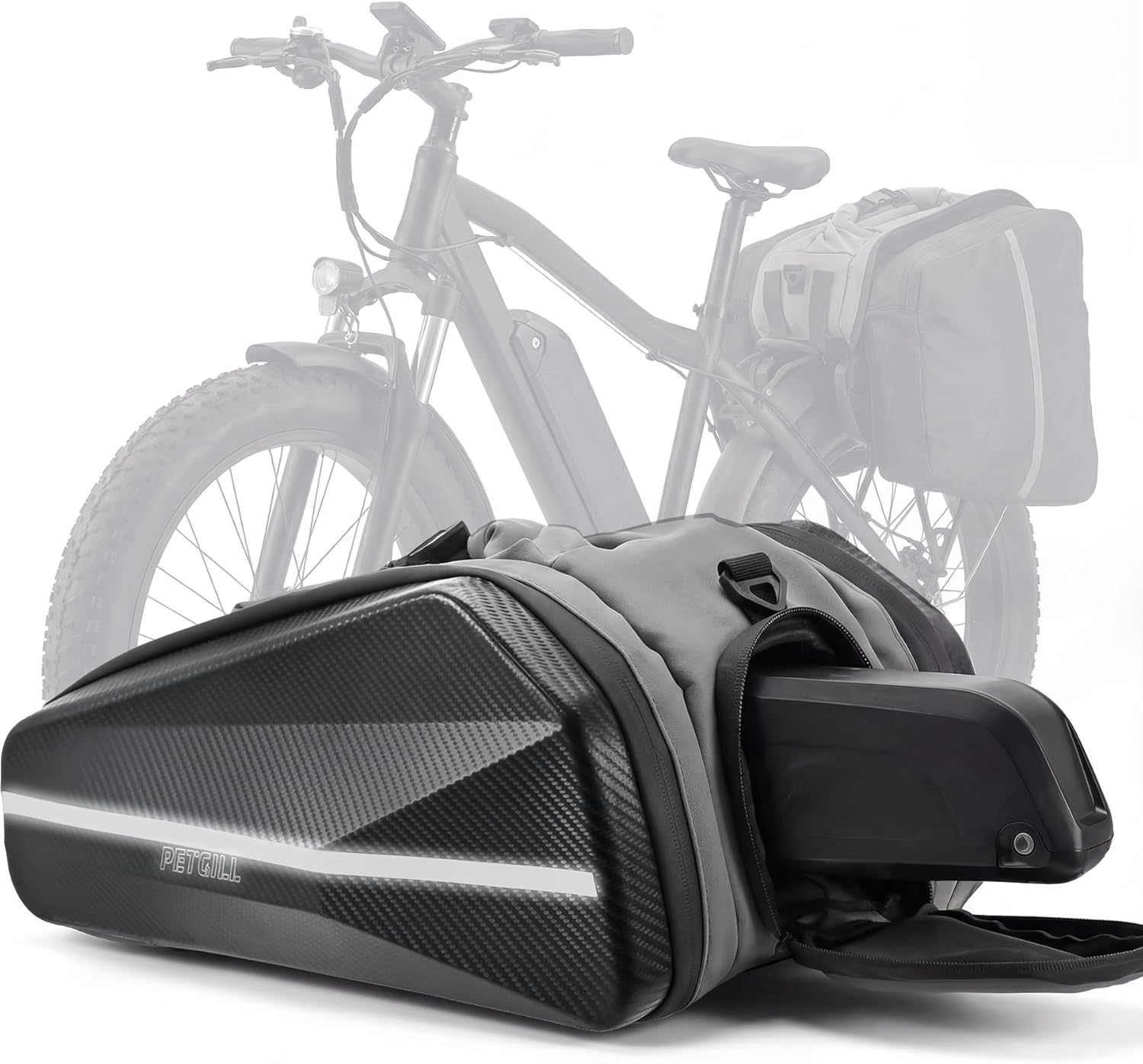 40L Ebike Battery Bag - Waterproof Hard Shell Rear Rack Bag with Reflective Strips & Shoulder Straps for E-Bikes