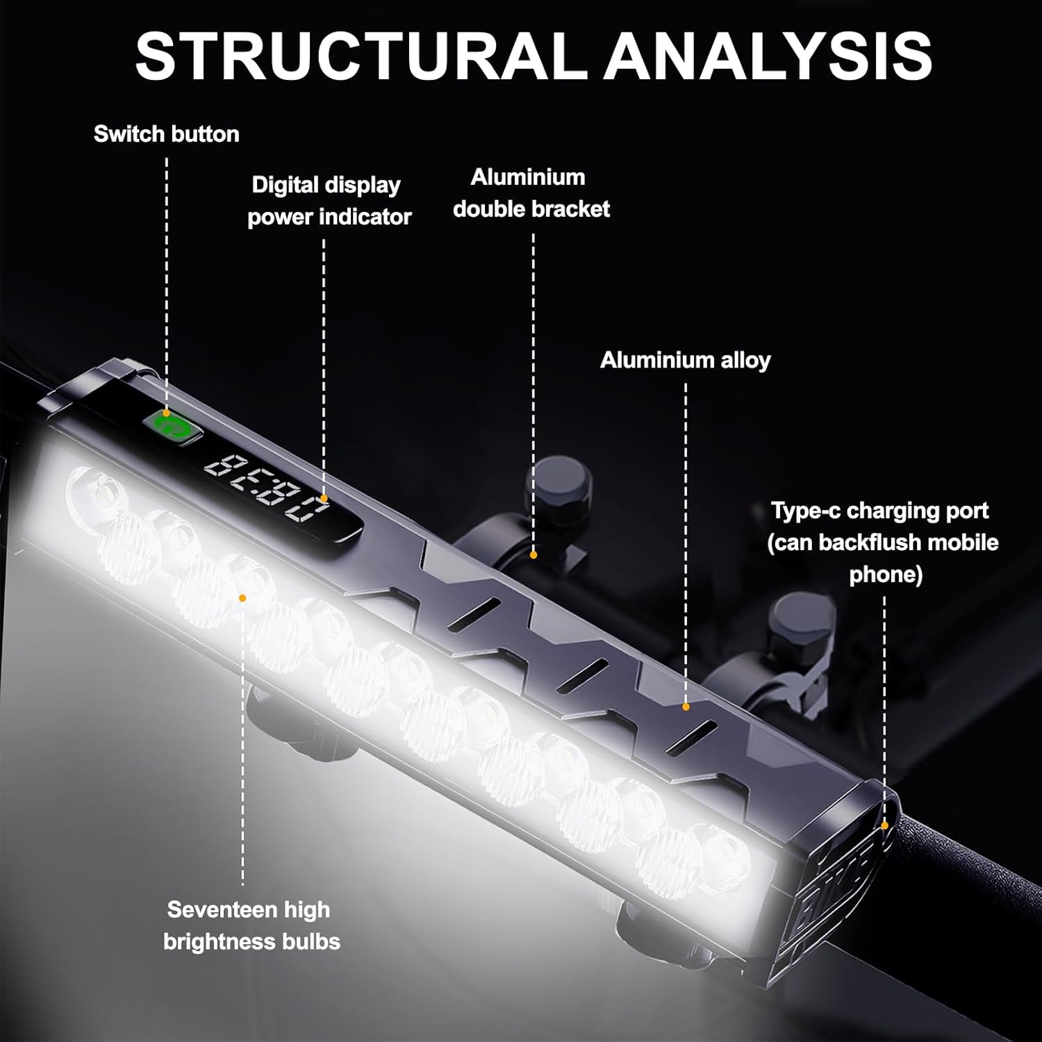 【Ultra Bright & Wide Beam】 See clearly on every ride with our powerful bike light. It delivers up to 2800 lumens and a long beam range of over 2600 feet, lighting up the road ahead for greater safety and confidence after dark.