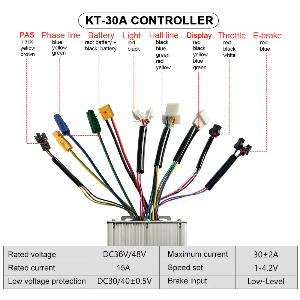 KT 48V30A Sine Wave Controller (12 MOSFET) with cruise control & battery protection