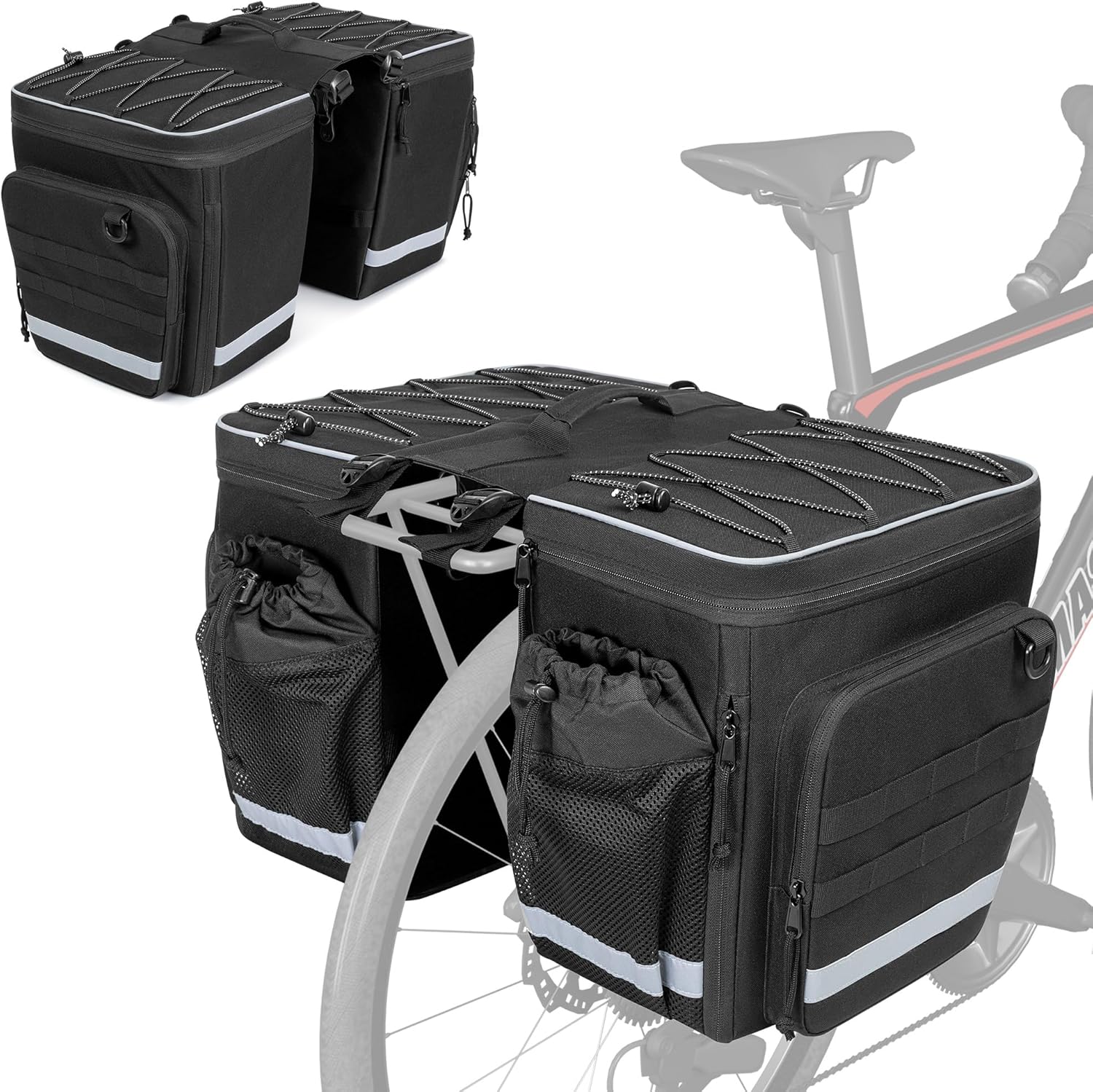 50L Bike Panniers with Rain Cover - Expandable Waterproof Bicycle Saddle Bag, Multi-Pocket Bike Luggage for Commuting & Touring