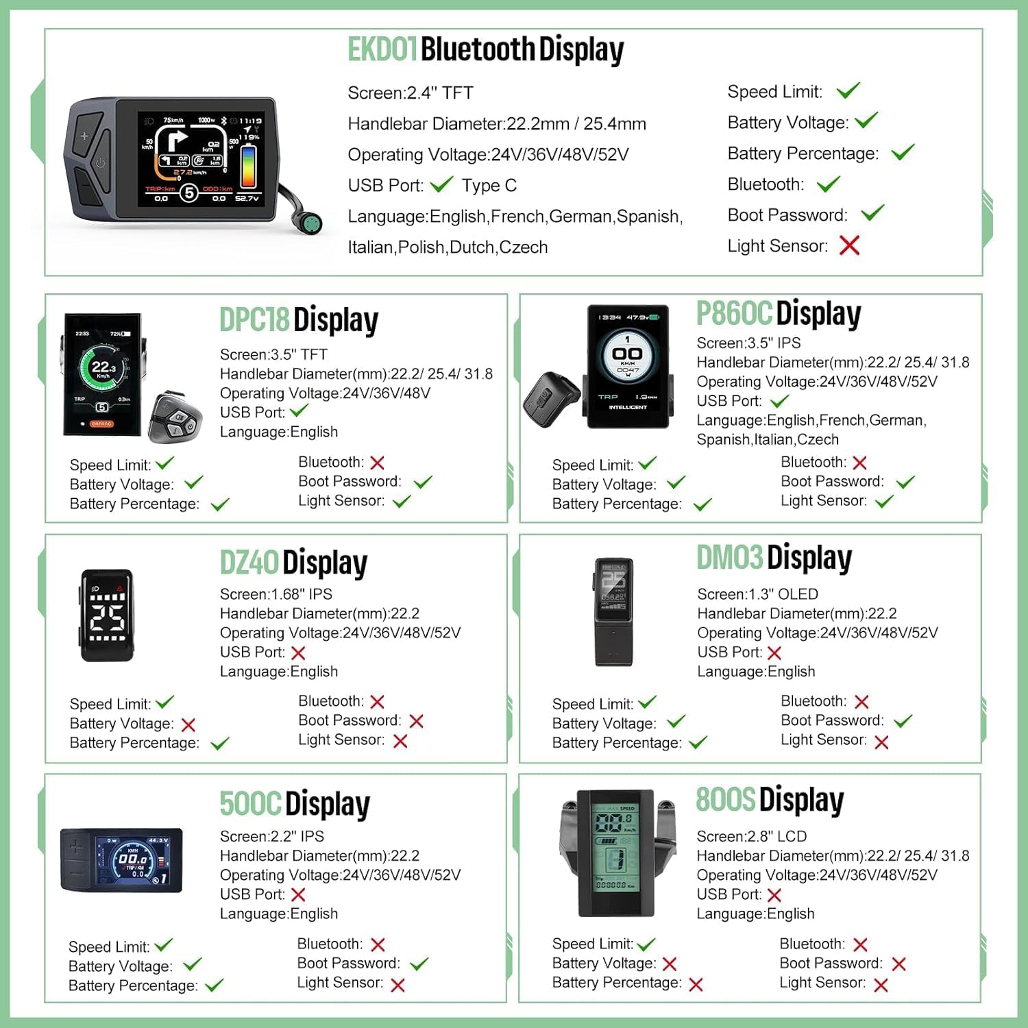Customizable Display Options: Tailor your ride with premium display compatibility. Choose from 500C, DPC18, P860ML, and more to monitor real-time speed, battery status, and PAS levels. Each display integrates seamlessly with the BAFANG rear hub motor, giving you the data you need for smarter, safer, and more controlled riding.