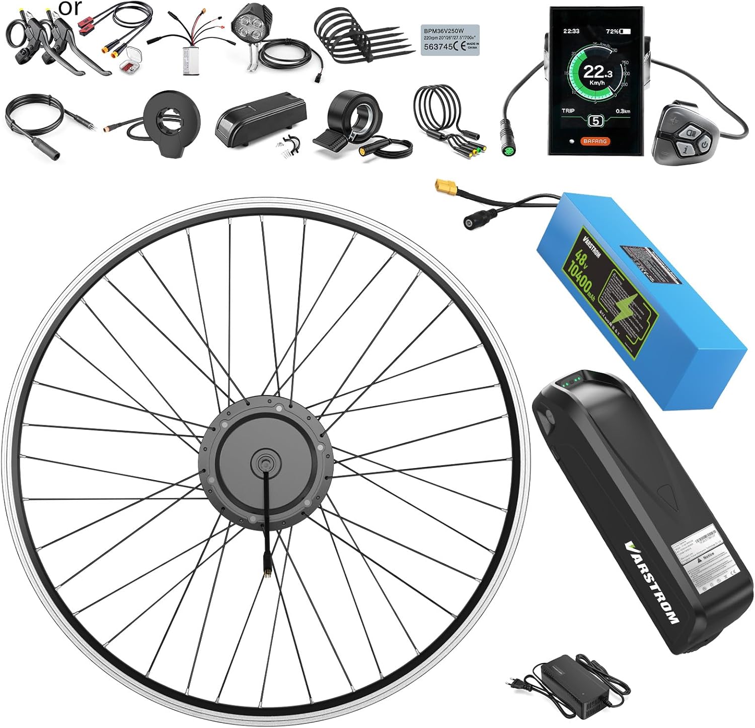 BAFANG 48V 500W Front Hub Motor Conversion Kit - TFT Display & 48V Battery Included for 20"/26"/700C (28"/29") Bikes