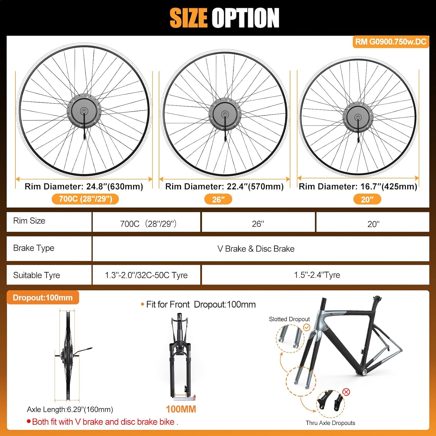 Designed for straightforward DIY installation, this Bafang e-bike conversion kit fits most bicycles with 100mm front dropouts. Compatible with 20", 26", and 700C wheels, it’s a versatile choice for converting city, commuter, and trail bikes into electric rides.