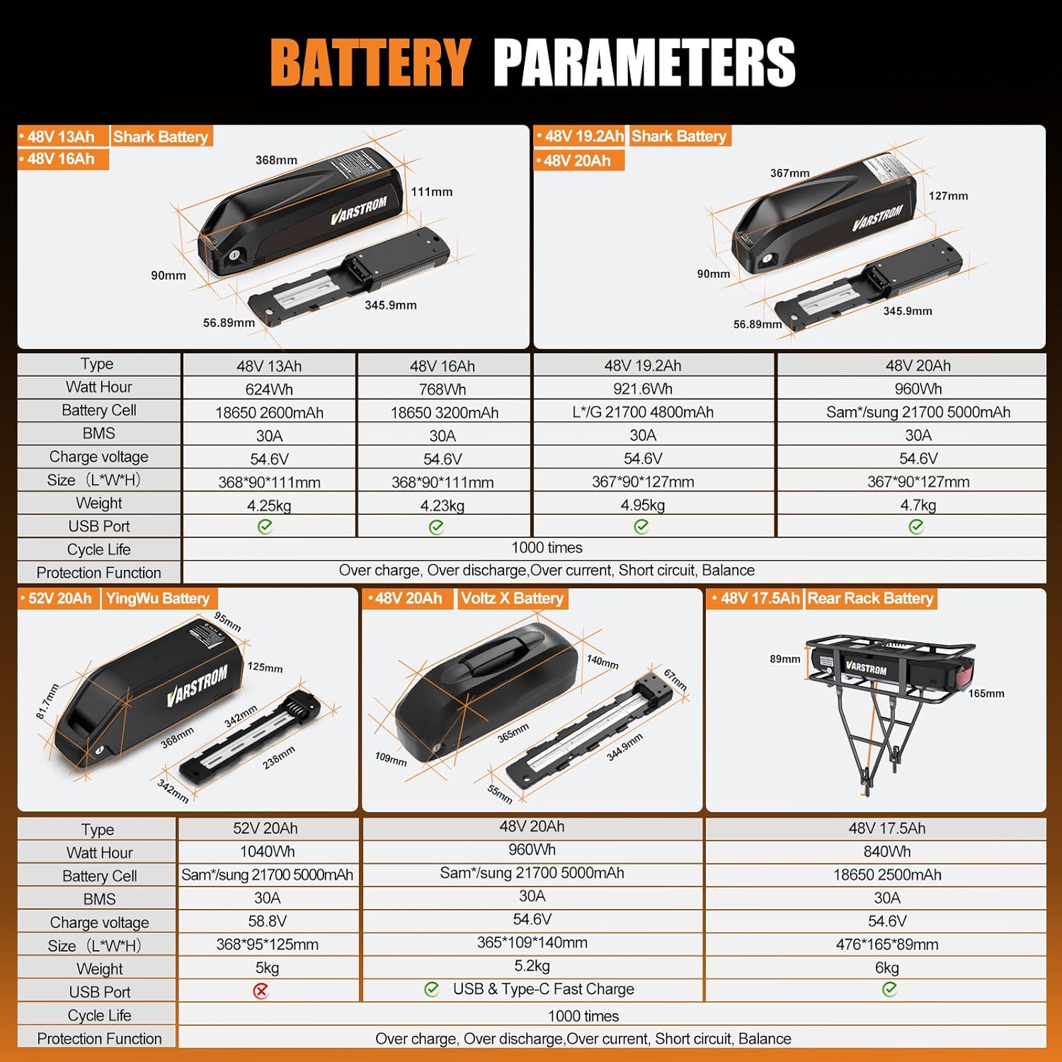 【Flexible 48V/52V Battery Compatibility】